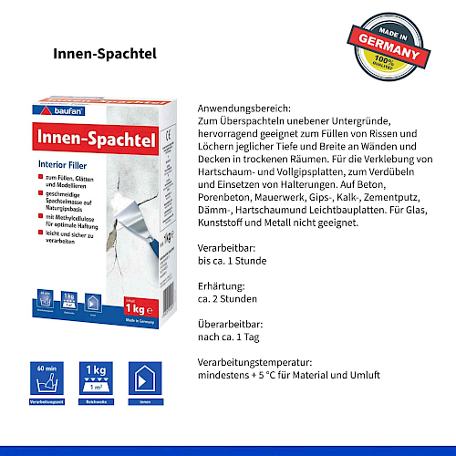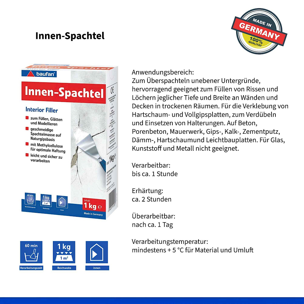 • CE-vaatimusten EN 13963-3B ja EN 13279-1 mukainen (kipsikipsi pintojen täyttämiseen C7/20/2).