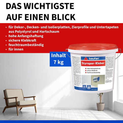 • polistiren ve sert köpükten yapılmış dekoratif ve tavan panelleri, yalıtım levhaları, pervazlar ve kaplama kağıtları için